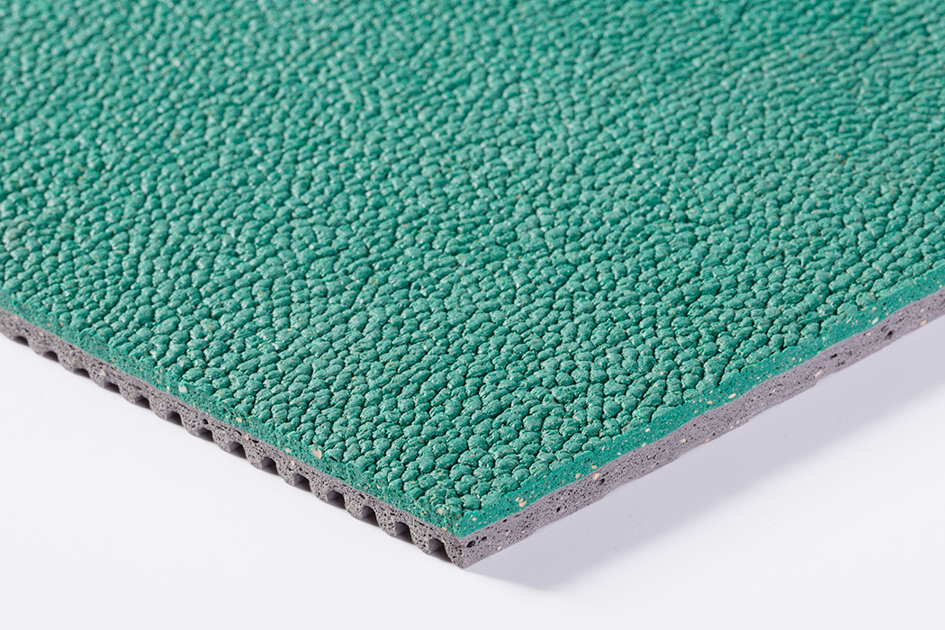 • Elastiskt slitstarkt gummi med hög densitet, med litchi-mönster, uppfyller i hög grad behoven hos en mängd olika sporter